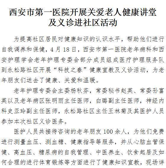 成人导航 开展关爱老人健康讲堂 及义诊进社区活动