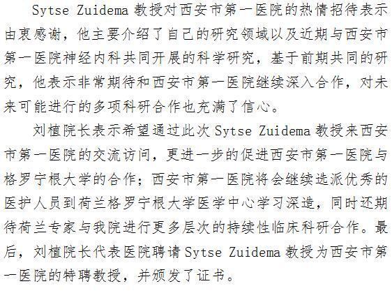 成人导航 聘请荷兰格罗宁根大学医学中心Sytse Zuidema为特聘教授
