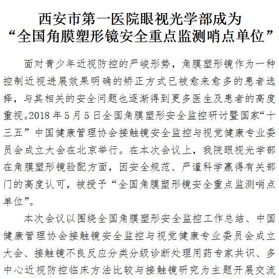 成人导航 眼视光学部成为 “全国角膜塑形镜安全重点监测哨点单位”