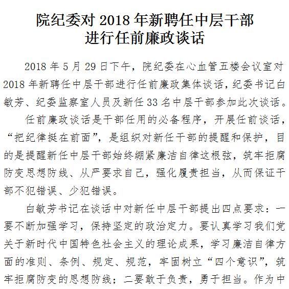 院纪委对2018年新聘任中层干部 进行任前廉政谈话