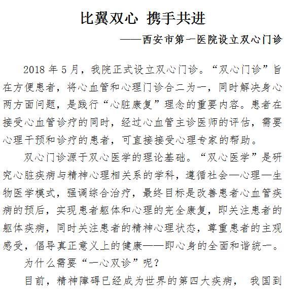 比翼双心 携手共进 ——成人导航 设立双心门诊