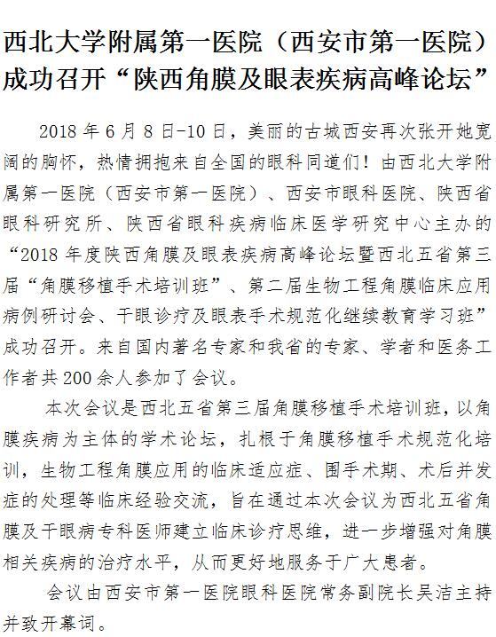 西北大学附属第一成人导航 (成人导航 )成功召开“陕西角膜及眼表疾病高峰论坛”