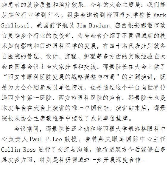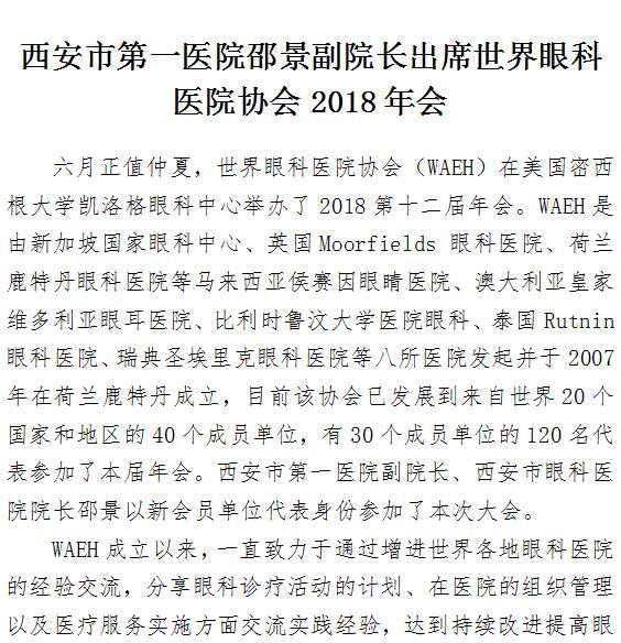 成人导航 邵景副院长出席世界眼科成人导航 协会2018年会