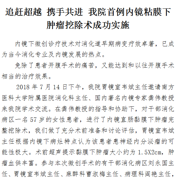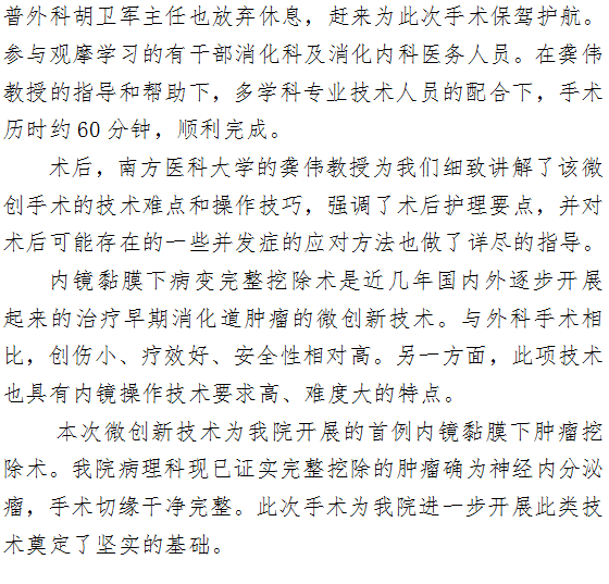追赶超越 携手共进 成人导航首例内镜粘膜下肿瘤挖除术成功实施