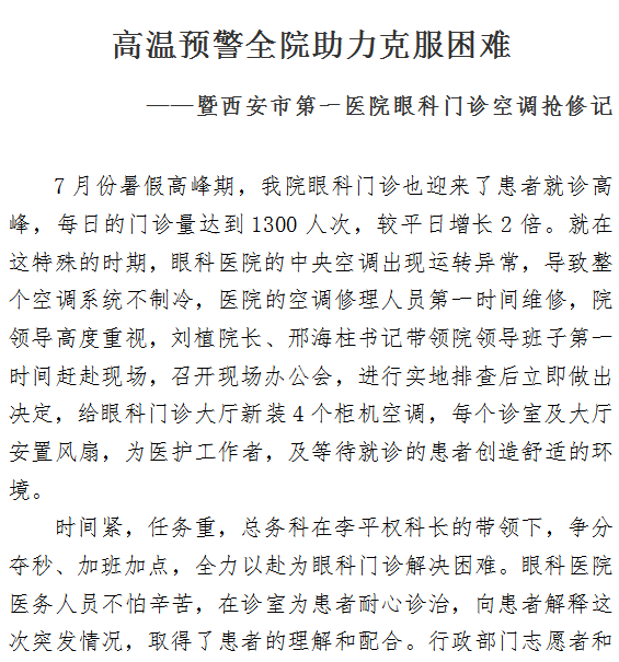 高温预警全院助力克服困难 ——暨成人导航 眼科门诊空调抢修记