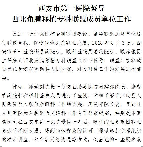 成人导航 督导西北角膜移植专科联盟成员单位工作