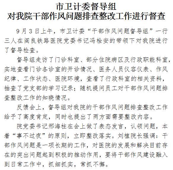 市卫计委督导组 对成人导航干部作风问题排查整改工作进行督查