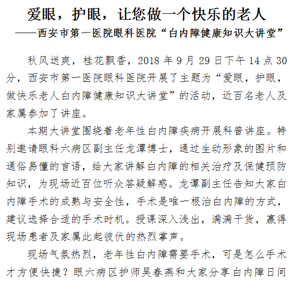 成人导航 眼科成人导航 举办“白内障健康知识大讲堂”