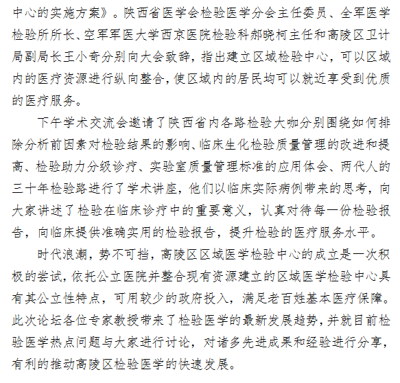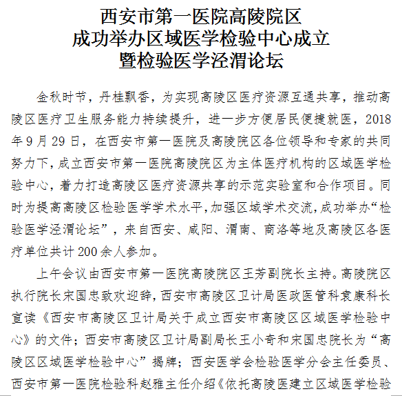 成人导航 高陵院区成功举办区域医学检验中心成立暨检验医学泾渭论坛
