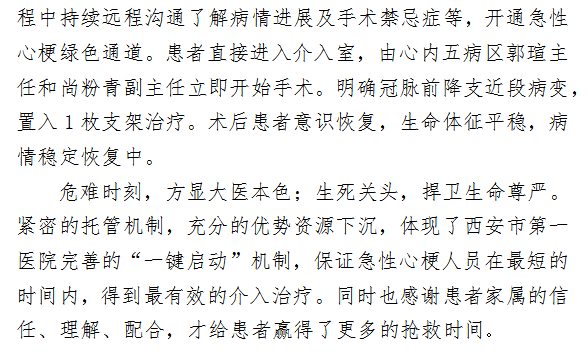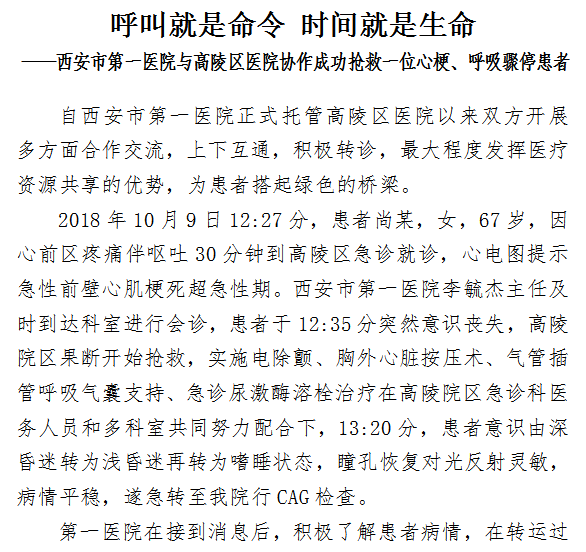 成人导航 与高陵区成人导航 协作成功抢救一位心梗、呼吸骤停患者