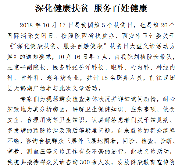 深化健康扶贫 服务百姓健康