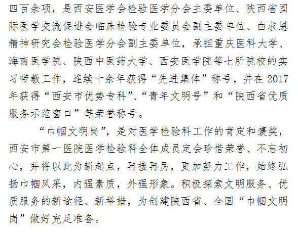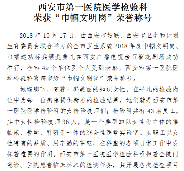 成人导航 医学检验科 荣获“巾帼文明岗”荣誉称号