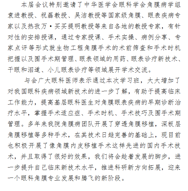 第九届陕西省角膜及眼表疾病 诊疗新进展学习班成功召开