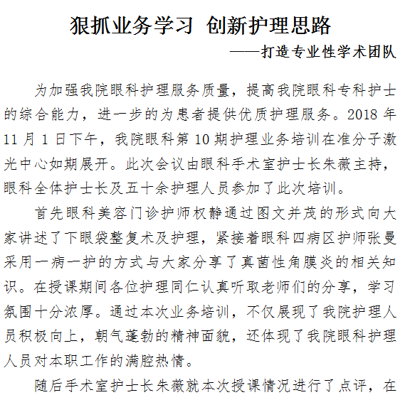 狠抓业务学习 创新护理思路 ——打造专业性学术团队