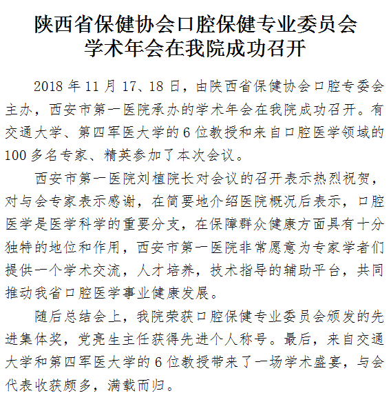 陕西省保健协会口腔保健专业委员会学术年会在成人导航成功召开