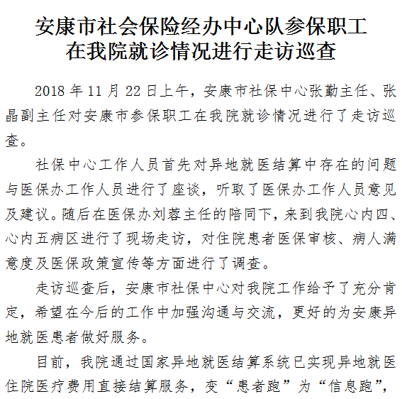安康市社会保险经办中心队参保职工在成人导航就诊情况进行走访巡查