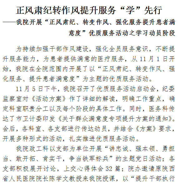 成人导航开展“正风肃纪、转变作风、强化服务提升患者满意度”优质服务活动—学习动员阶段