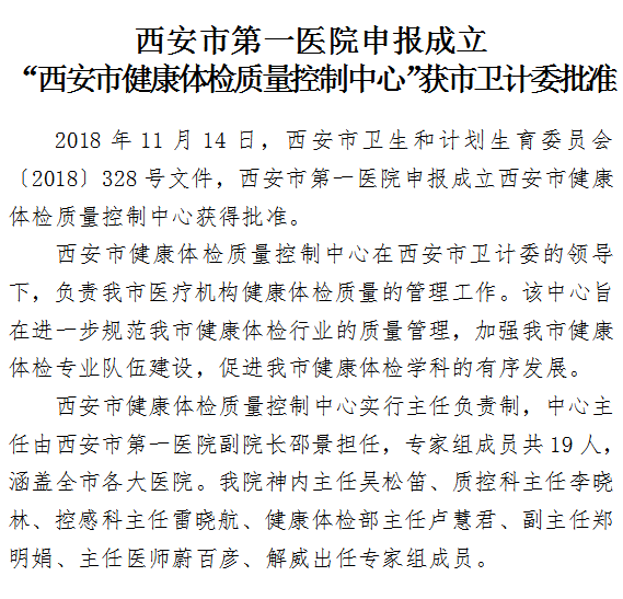 成人导航 申报成立“西安市健康体检质量控制中心”获市卫计委批准