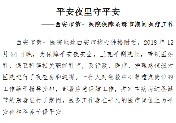 平安夜里守平安 ——成人导航 保障圣诞节期间医疗工作