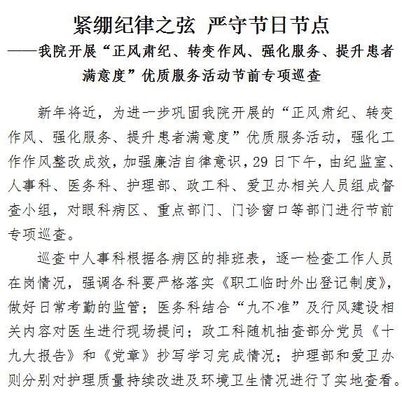 成人导航开展“正风肃纪、转变作风、强化服务、提升患者满意度”优质服务活动节前专项巡查