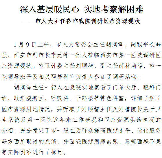 深入基层暖民心 实地考察解困难——市人大主任莅临成人导航调研医疗资源现状