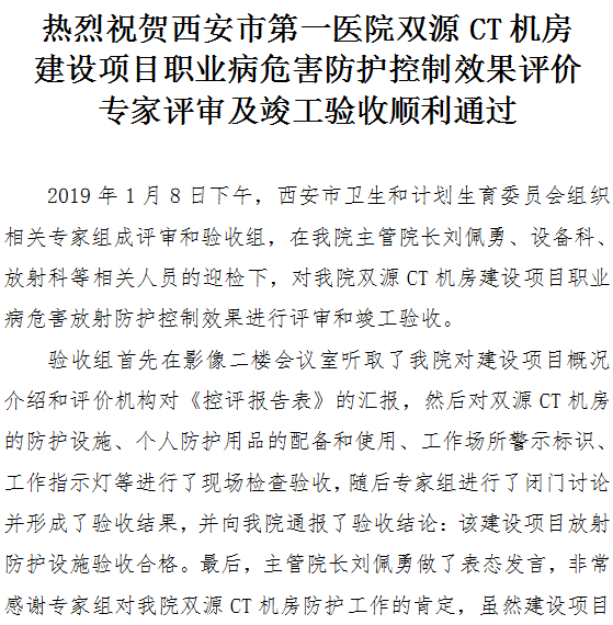 一院双源CT机房建设项目职业病危害防护控制效果评价专家评审及竣工验收顺利通过