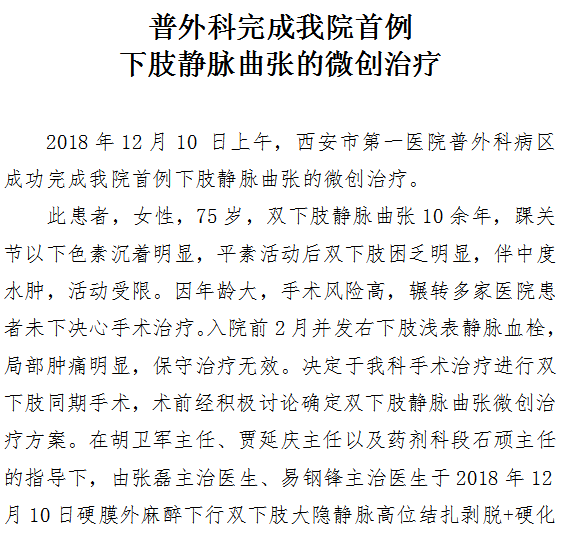 普外科完成成人导航首例下肢静脉曲张的微创治疗