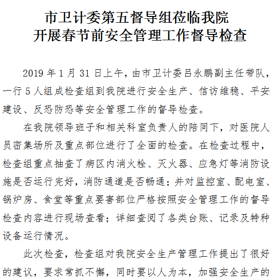 市卫计委第五督导组莅临成人导航 开展春节前安全管理工作督导检查