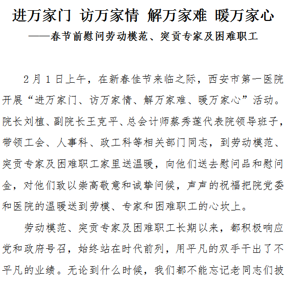 进万家门 访万家情 解万家难 暖万家心——春节前慰问劳动模范、突贡专家及困难