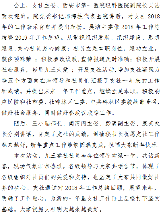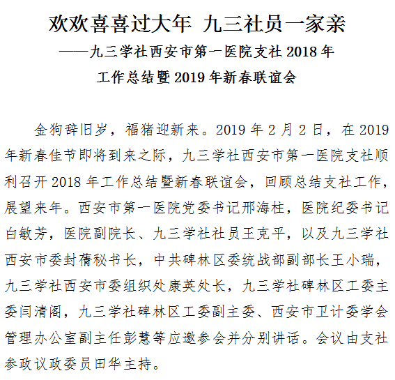 欢欢喜喜过大年 九三社员一家亲 ——九三学社成人导航 支社2018年工作总结