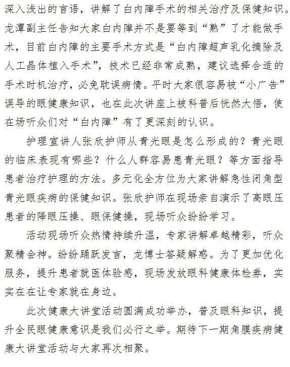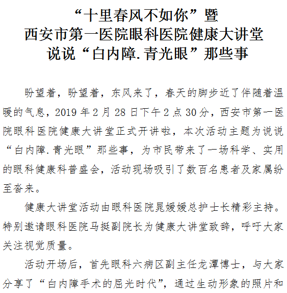 “十里春风不如你”暨成人导航 眼科成人导航 健康大讲堂 说说“白内障.青光眼”