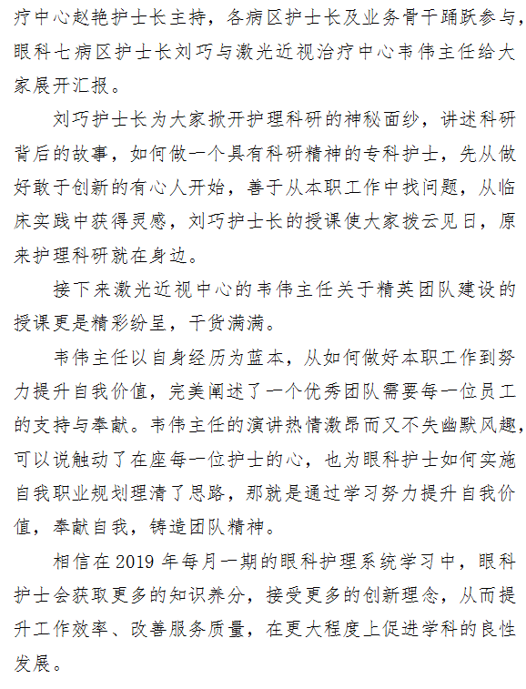 提升自我价值,促进学科发展——2019年第二期眼科护士业务培训纪实