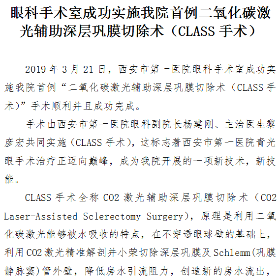 眼科手术室成功实施成人导航首例二氧化碳激光辅助深层巩膜切除术(CLASS手术)