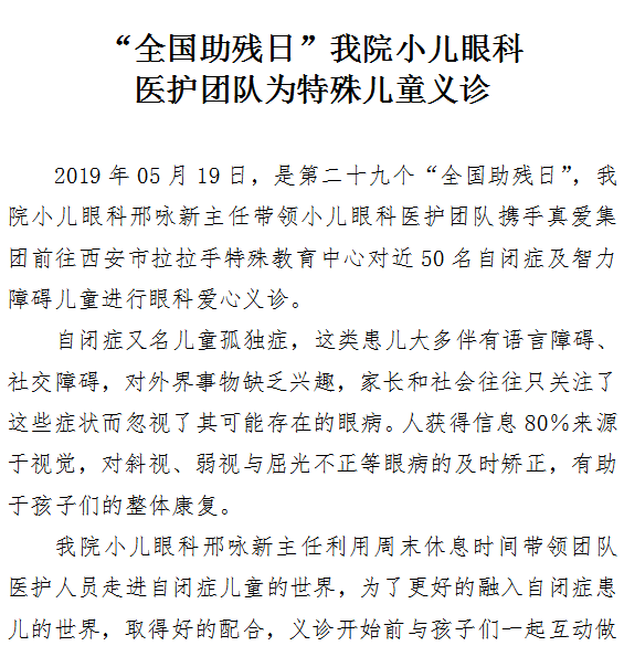 “全国助残日”成人导航小儿眼科医护团队为特殊儿童义诊