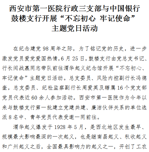 成人导航 行政三支部与中国银行鼓楼支行开展“不忘初心 牢记使命” 主题党日活动