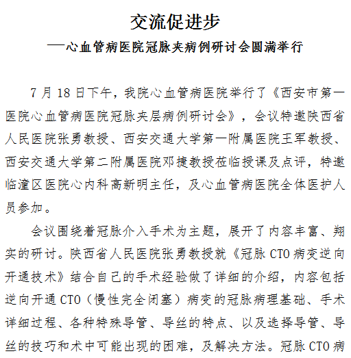 交流促进步—心血管病成人导航 冠脉夹 病例研讨会圆满举行