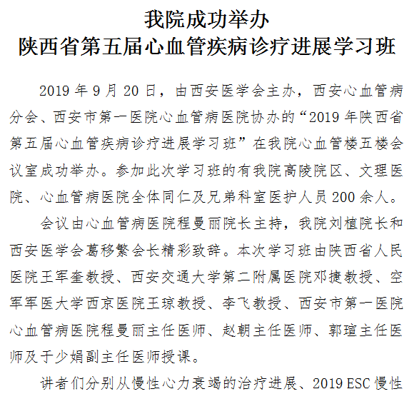 成人导航成功举办陕西省第五届心血管疾病诊疗进展学习班